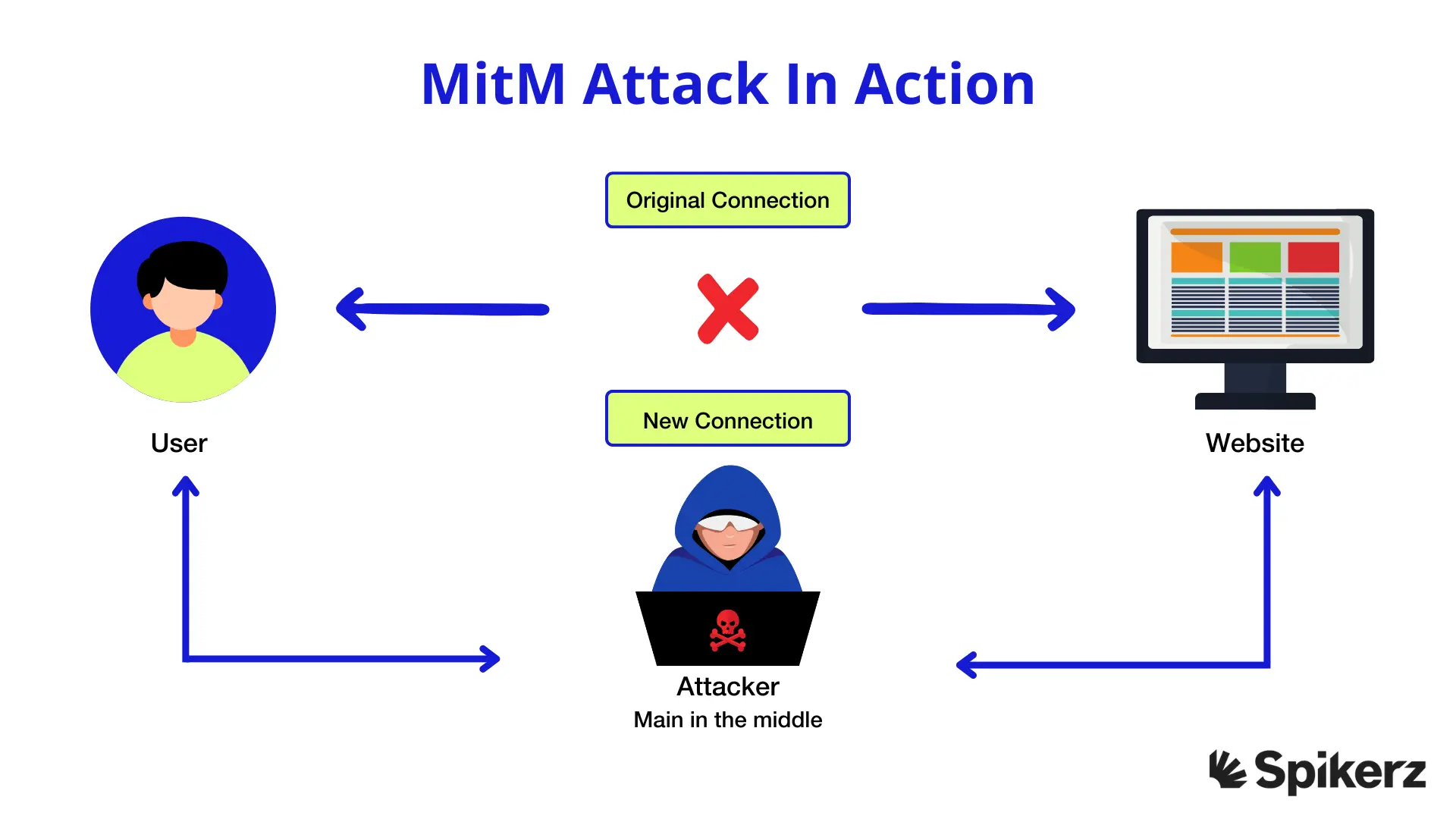 A man-in-the-middle (MitM) attack happens when hackers intercept communication between two parties without their knowledge. They eavesdrop on conversations and potentially alter or steal the data being exchanged. These attacks give criminals access to login credentials, financial information, and confidential business communications.