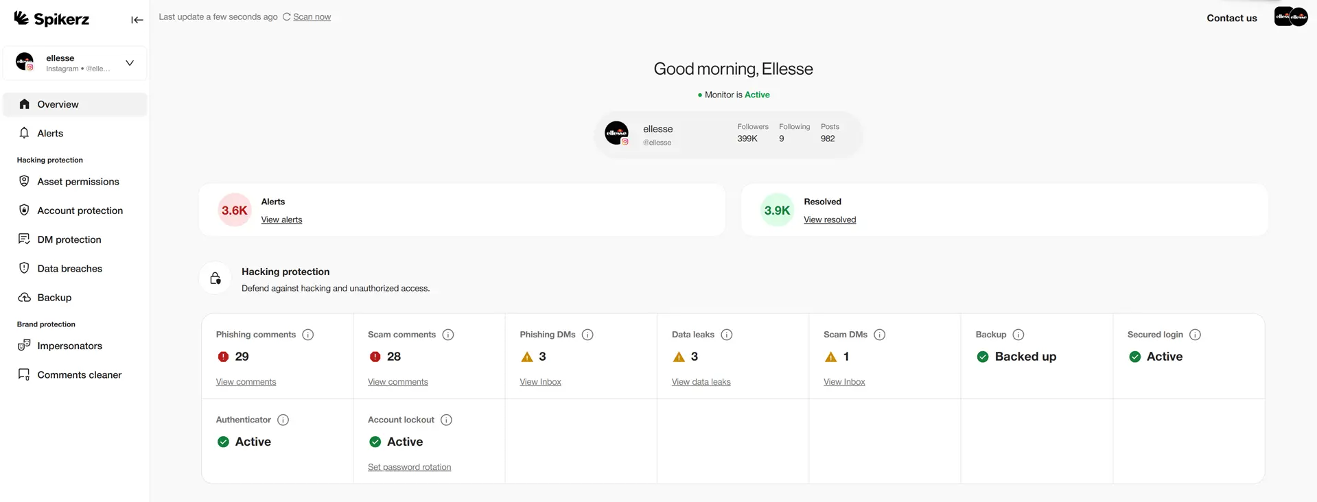 One of these specialized solutions is Spikerz. It protects your accounts from phishing, bot attacks, and other forms of social engineering attacks by monitoring login patterns, unrecognized access, permission changes, and breaches in real time.
