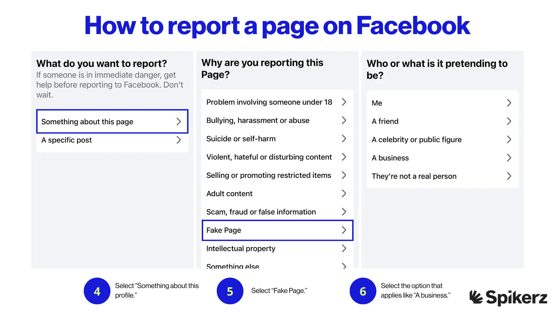 The process for reporting an impersonating Facebook Page is similar: