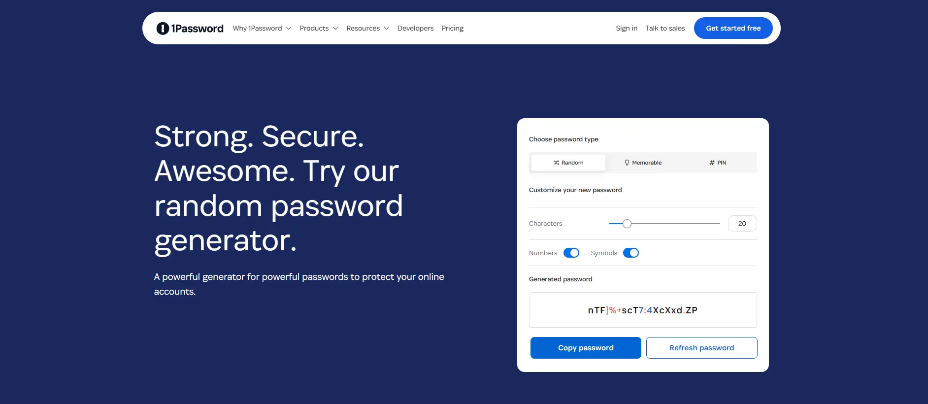 1Password helps improve your account security by generating randomly generated passwords that are nearly impossible for hackers to crack. For example, a 20-character password including uppercase letters, lowercase letters, numbers, and symbols could take billions of years for current technology to crack through brute force.
