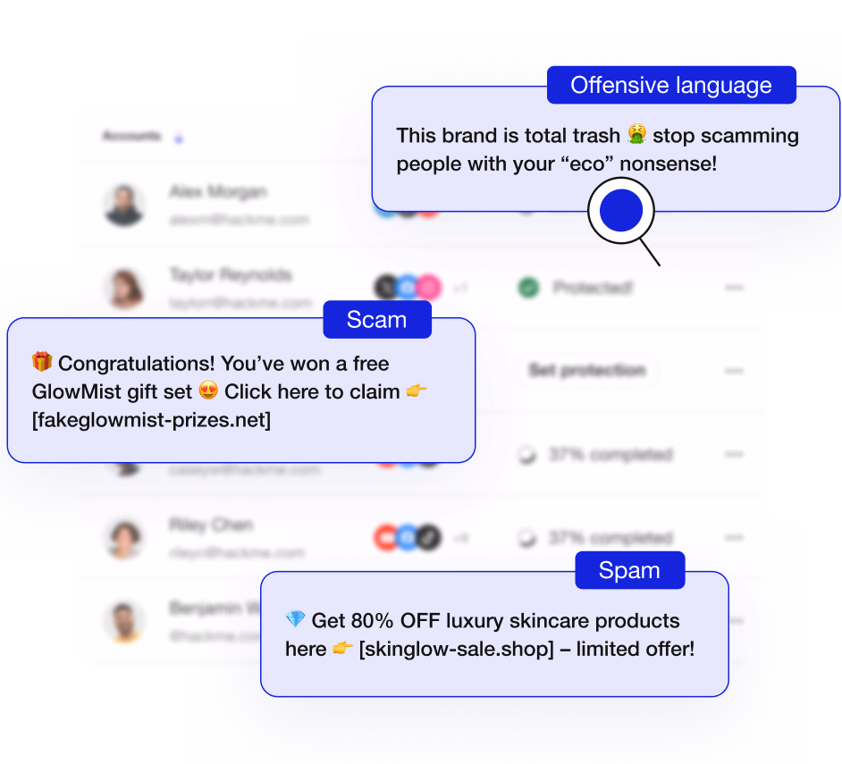 Join over 5,000 brands and enterprises already trusting Spikerz to secure their accounts, moderate comments, and identify impersonators.